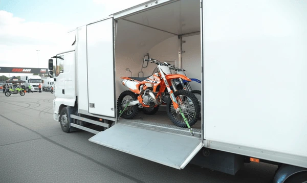 Transport en utilitaire fermé, idéal pour les motos tout-terrain.